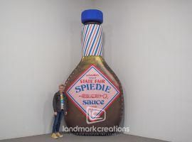 The Heavenly Hand custom inflatable replica, created for Barker Designs, serves as a striking focal point at trade shows. Featuring a suspended hand emerging from a cloud and holding a branded bottle over a bowl of popcorn, this dynamic display combines creativity and scale to captivate audiences. Its playful yet professional design is ideal for agencies and event planners looking to make a lasting impression. This installation showcases our ability to bring brands to life through immersive visuals that enhance audience engagement and drive memorable experiences.