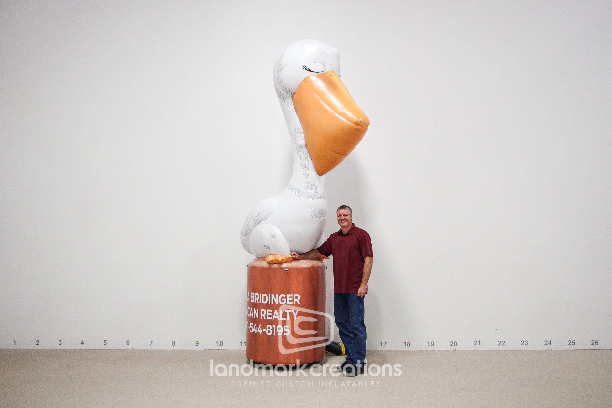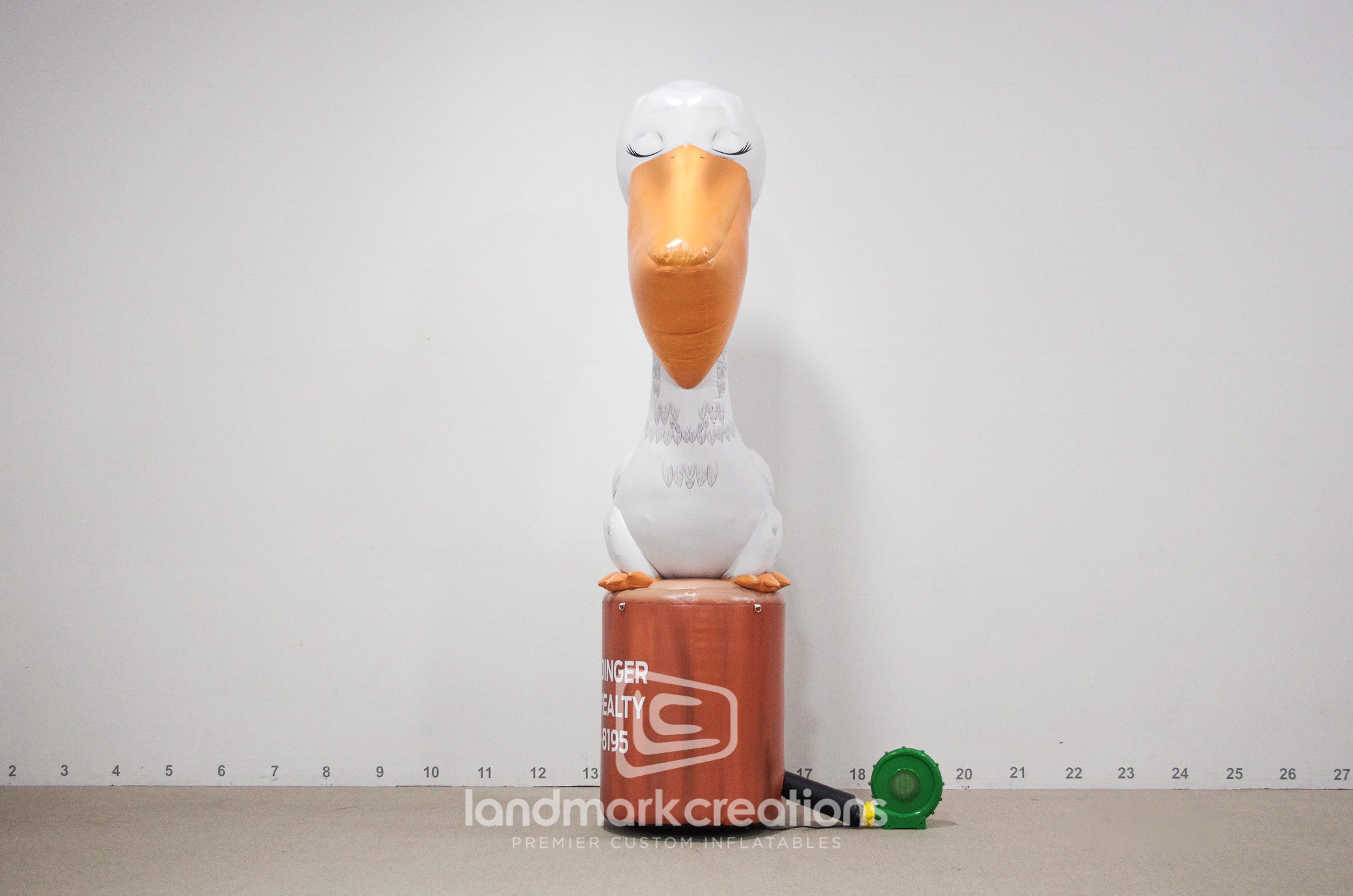 Your business will surely stand out with a friendly, inflatable mascot! This custom-built pelican welcomes potential buyers at open house events for a Florida realtor.