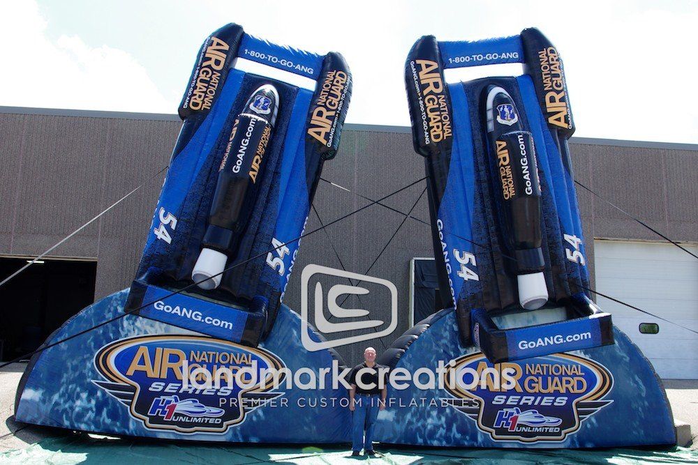 Big events deserve big inflatable displays. Check out these inflatable powerboats for the H1 Unlimited Series, a boat racing series featuring Unlimited Hydroplanes - the world's fastest race boats.