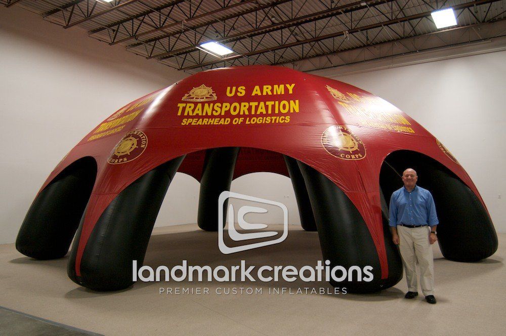 Custom-designed inflatable AirTents offer 360-degrees of visual real estate to promote your organization or brand. The U.S. Army Transportation Corps. of Fort Eustis uses their custom AirTent at events to attract crowds.
