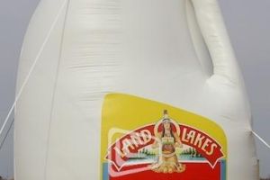 This is what most people think of when inflatables come to mind. Available in custom sizes and designs, cold-air inflatables can be mounted on the ground, on rooftops, indoors or at any fixed location. They inflate with the aid of a blower system in just minutes bringing your product replica, mascot, logo or sports tunnel to life.