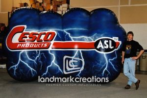 This is what most people think of when inflatables come to mind. Available in custom sizes and designs, cold-air inflatables can be mounted on the ground, on rooftops, indoors or at any fixed location. They inflate with the aid of a blower system in just minutes bringing your product replica, mascot, logo or sports tunnel to life.