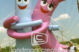 This is what most people think of when inflatables come to mind. Available in custom sizes and designs, cold-air inflatables can be mounted on the ground, on rooftops, indoors or at any fixed location. They inflate with the aid of a blower system in just minutes bringing your product replica, mascot, logo or sports tunnel to life.