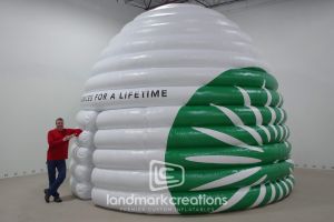 This is what most people think of when inflatables come to mind. Available in custom sizes and designs, cold-air inflatables can be mounted on the ground, on rooftops, indoors or at any fixed location. They inflate with the aid of a blower system in just minutes bringing your product replica, mascot, logo or sports tunnel to life.
