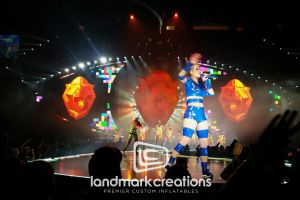 This is what most people think of when inflatables come to mind. Available in custom sizes and designs, cold-air inflatables can be mounted on the ground, on rooftops, indoors or at any fixed location. They inflate with the aid of a blower system in just minutes bringing your product replica, mascot, logo or sports tunnel to life.