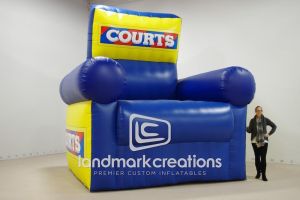 This is what most people think of when inflatables come to mind. Available in custom sizes and designs, cold-air inflatables can be mounted on the ground, on rooftops, indoors or at any fixed location. They inflate with the aid of a blower system in just minutes bringing your product replica, mascot, logo or sports tunnel to life.