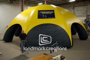 This is what most people think of when inflatables come to mind. Available in custom sizes and designs, cold-air inflatables can be mounted on the ground, on rooftops, indoors or at any fixed location. They inflate with the aid of a blower system in just minutes bringing your product replica, mascot, logo or sports tunnel to life.