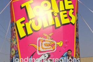 This is what most people think of when inflatables come to mind. Available in custom sizes and designs, cold-air inflatables can be mounted on the ground, on rooftops, indoors or at any fixed location. They inflate with the aid of a blower system in just minutes bringing your product replica, mascot, logo or sports tunnel to life.