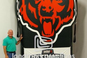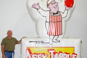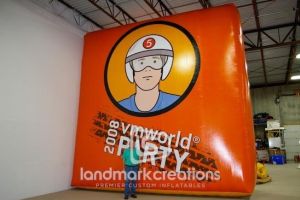 This is what most people think of when inflatables come to mind. Available in custom sizes and designs, cold-air inflatables can be mounted on the ground, on rooftops, indoors or at any fixed location. They inflate with the aid of a blower system in just minutes bringing your product replica, mascot, logo or sports tunnel to life.