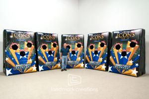 Whether you are looking for the classic A-style inflatable football toss or want to turn your product into a mobile throw station inflatable sports tosses help you score points with sports fans! Inflatable football tosses and throw stations are great for entertaining fans at pre and post-game events, attracting attention at tailgating parties and adding excitement to end zone competitions.