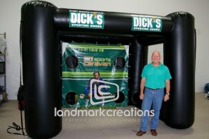 Whether you are looking for the classic A-style inflatable football toss or want to turn your product into a mobile throw station inflatable sports tosses help you score points with sports fans! Inflatable football tosses and throw stations are great for entertaining fans at pre and post-game events, attracting attention at tailgating parties and adding excitement to end zone competitions.