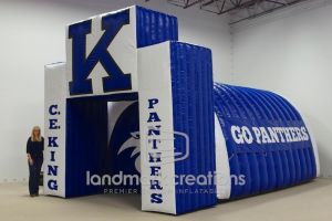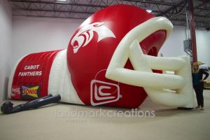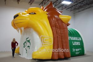 Landmark Creations can build custom inflatable tunnels specifically for you using your mascot, school colors, or theme.