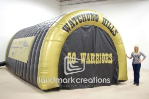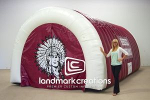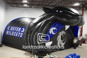 Landmark Creations can build custom inflatable tunnels specifically for you using your mascot, school colors, or theme.