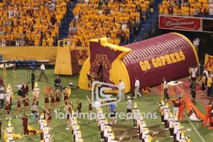 Landmark Creations can build custom inflatable tunnels specifically for you using your mascot, school colors, or theme.
