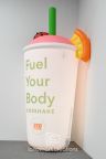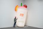 This giant inflatable smoothie cup replica for 310 Nutrition showcases their #310Shake complete with a green straw and cut fruit pieces. The custom inflatable replica has an internal LED light system, so it promotes their "Fuel Your Body" messaging and the brand at events and retail locations both day and night.