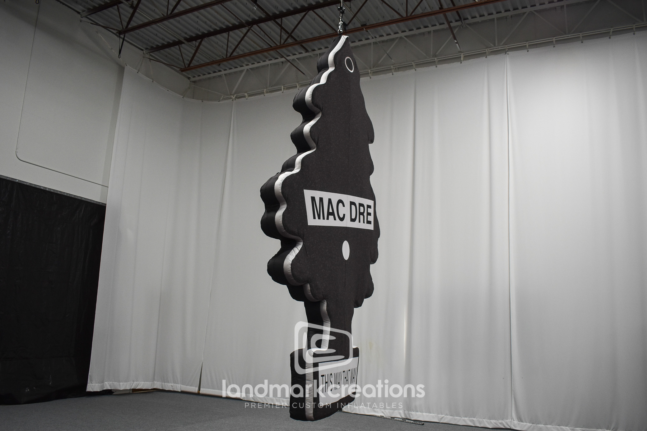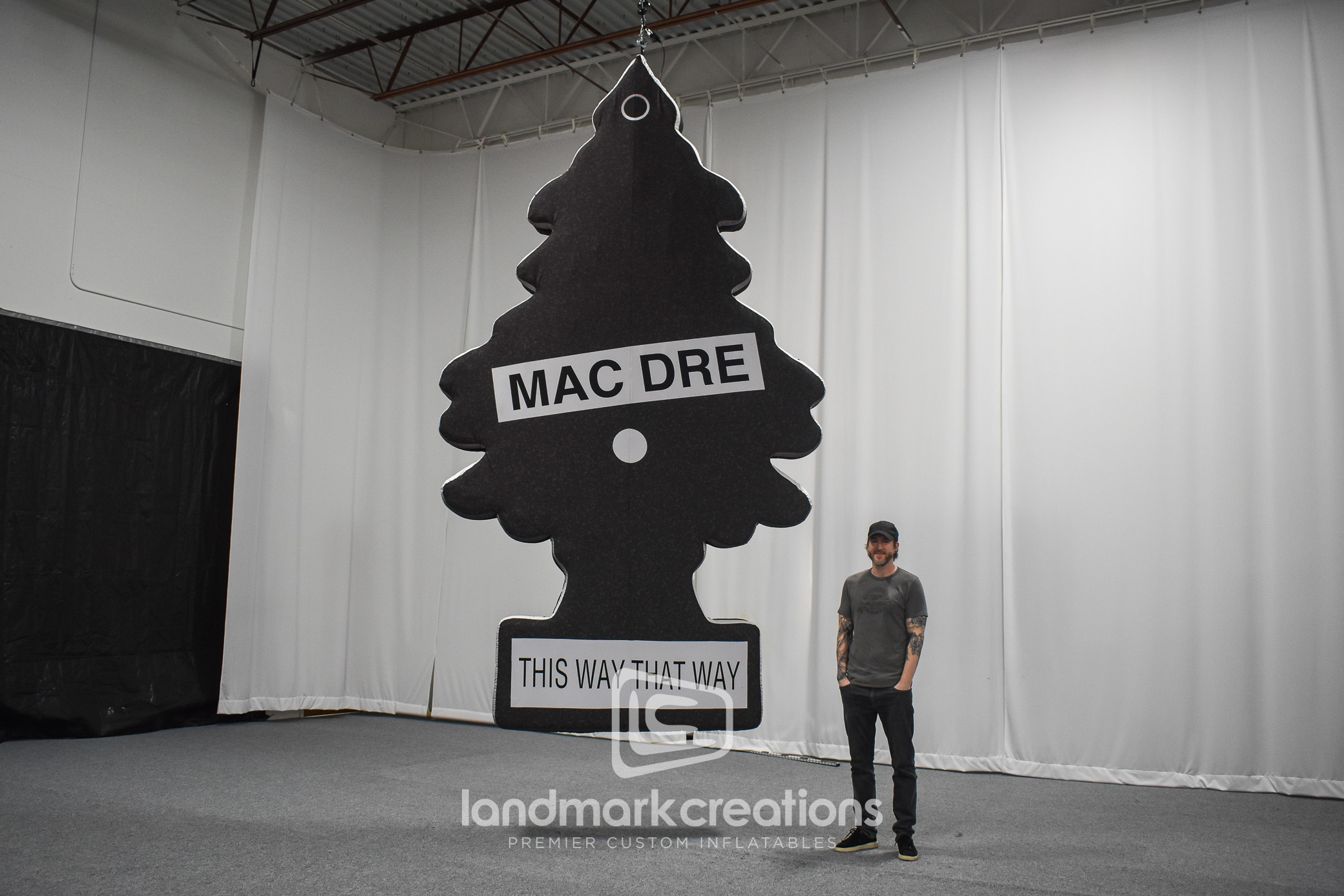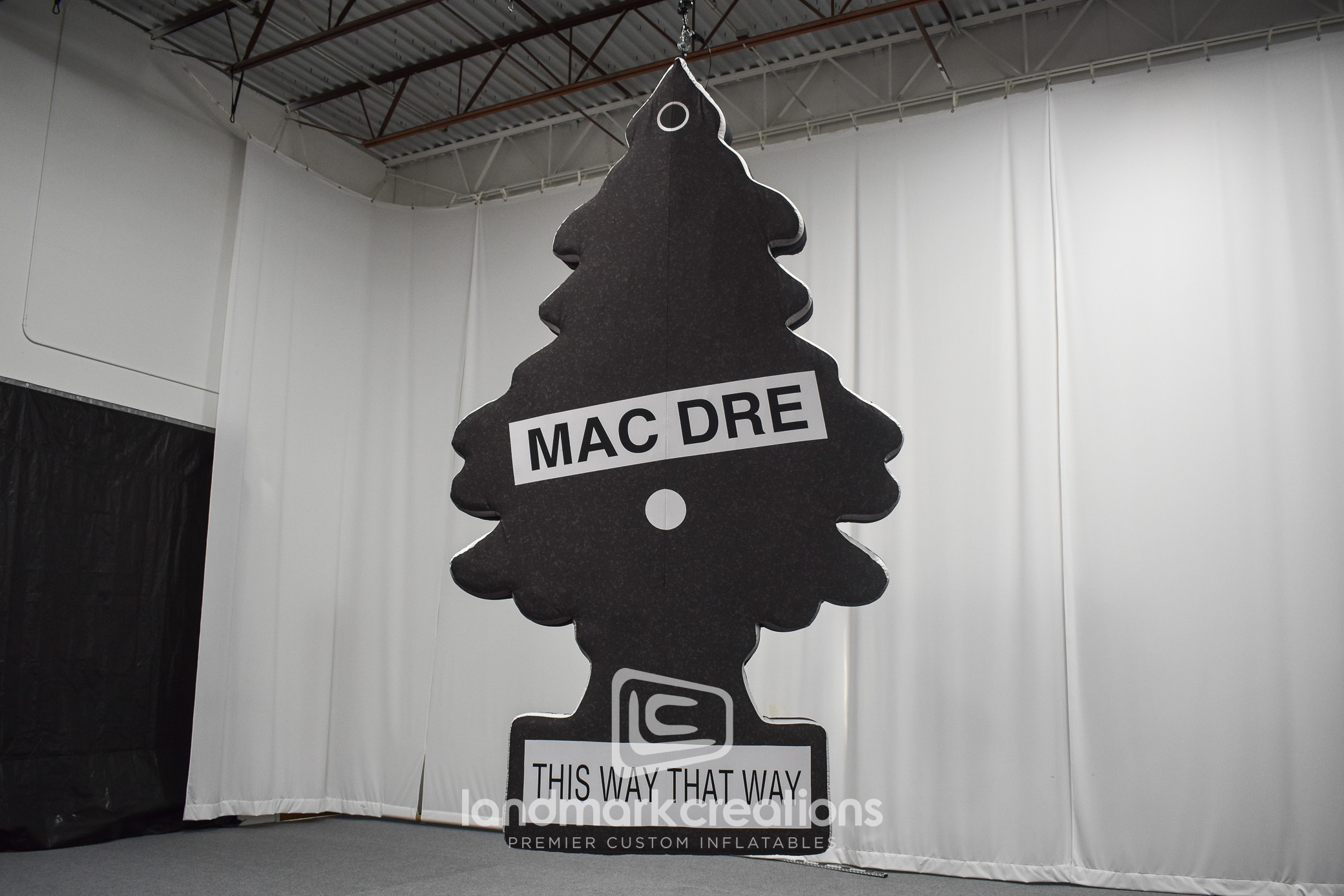 To support Kendrick Lamar’s 2025 tour visuals, tour director Coffey Black collaborated with Landmark Creations on a custom inflatable art piece modeled after a classic air freshener. Suspended above the stage and paired with oversized inflatable dice, this 14-foot display served as a dramatic and unexpected visual anchor. Simple in palette and striking in form, it added scale, contrast, and a touch of surrealism to the tour’s evolving stage design—proving once again that impactful visuals start with bold ideas.