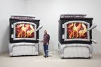 This oversized fireplace may not provide real heat, but it sure warmed things up for Aqua Rec Fireside Hearth & Home’s business. The highly detailed, custom designed inflatable fireplace was visually stirring and drew people to the retail store.