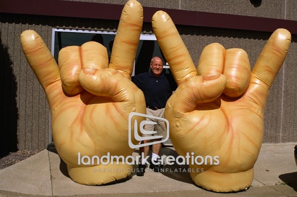 The punk rock band Bowling for Soup used these Hook em Horns as stage props during their European tour. Inflatable, easily portable and definitely eye-catching, they added a great deal of stage presence as the band performed. In addition, they helped create some additional buzz as fans discussed the show afterwards with their friends.
