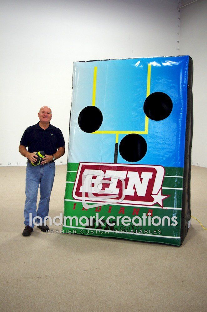 The Big Ten Network interacted with Indiana fans by inflating this football toss at home games. Sports cages like this add fun to events and are a great advertising tool.