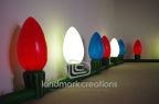 These oversized inflatable Christmas lights were illuminated and display at Six Flags in Georgia! Giant holiday-themed inflatables create a fun atmosphere for visitors.