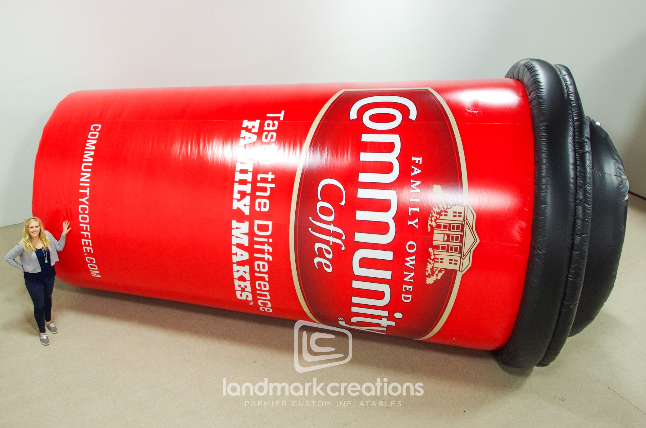 The Community Coffee Cup inflatable is a giant replica designed to attract coffee lovers. Whether used at festivals, trade shows, or in-store promotions, this attention-grabbing inflatable promotes your brand and delights attendees.