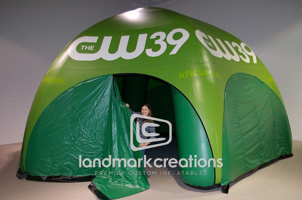 AirTents offer television networks a way to creatively advertise multiple stations at events throughout the year. This custom AirTent for KHCW-TV increased visibility and drew crowds at both indoor and outdoor events.