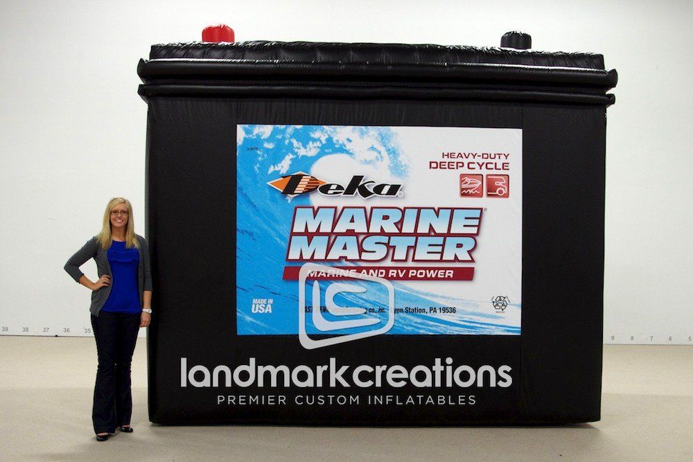 The Automotive Parts Headquarters team draws crowds at automotive marketing events in Minnesota and Wisconsin with this 10-foot inflatable Deka battery replica.
