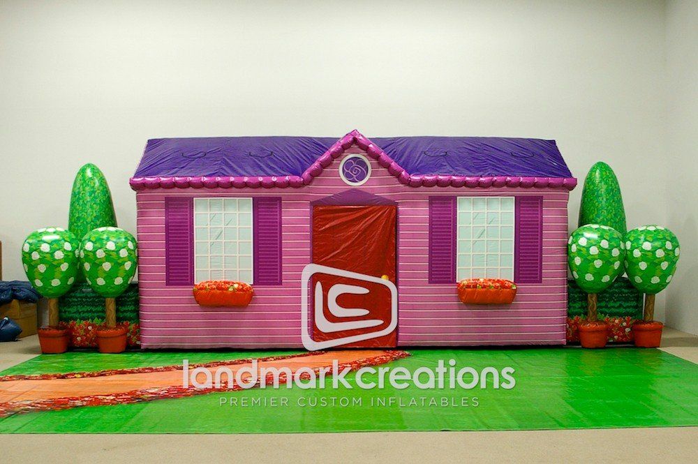 Set designers for The Wiggles tour and events used this inflatable house prop for the popular character Dorothy the Dinosaur. Inflatables add depth and interest on stage and help audiences imagine another world.