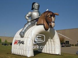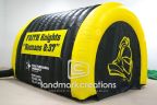 Traditional spirit tunnels like this one designed for the FAITH Knights is an excellent option for organizations with multi purpose use in mind. Logos can be placed at the exit door and there's plenty of space on the sides for sponsorship banners or promotional signs.