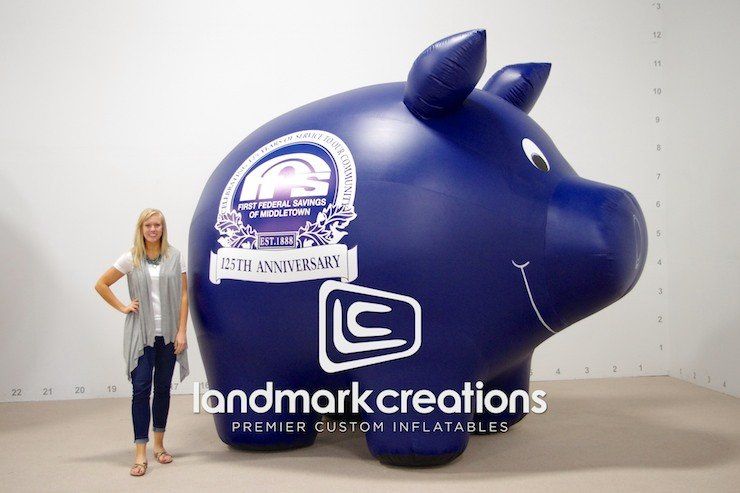 First Federal Savings of Middletown displayed this inflatable piggy bank on a parade float to celebrate the 125th Anniversary of the City of Middletown! The 8-foot-tall inflatable pig, complete with logos, was seen by the crowds of residents attending the parade.