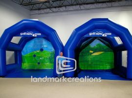 First Tee created a custom inflatable golf cage to promote their golf lessons and clinics at various community events like National Night Out. Their custom inflatable included a backdrop with positive messaging supporting their organization's brand and values. Because they're easy to pack and transport, inflatable golf cages can be easily stored and taken between events.