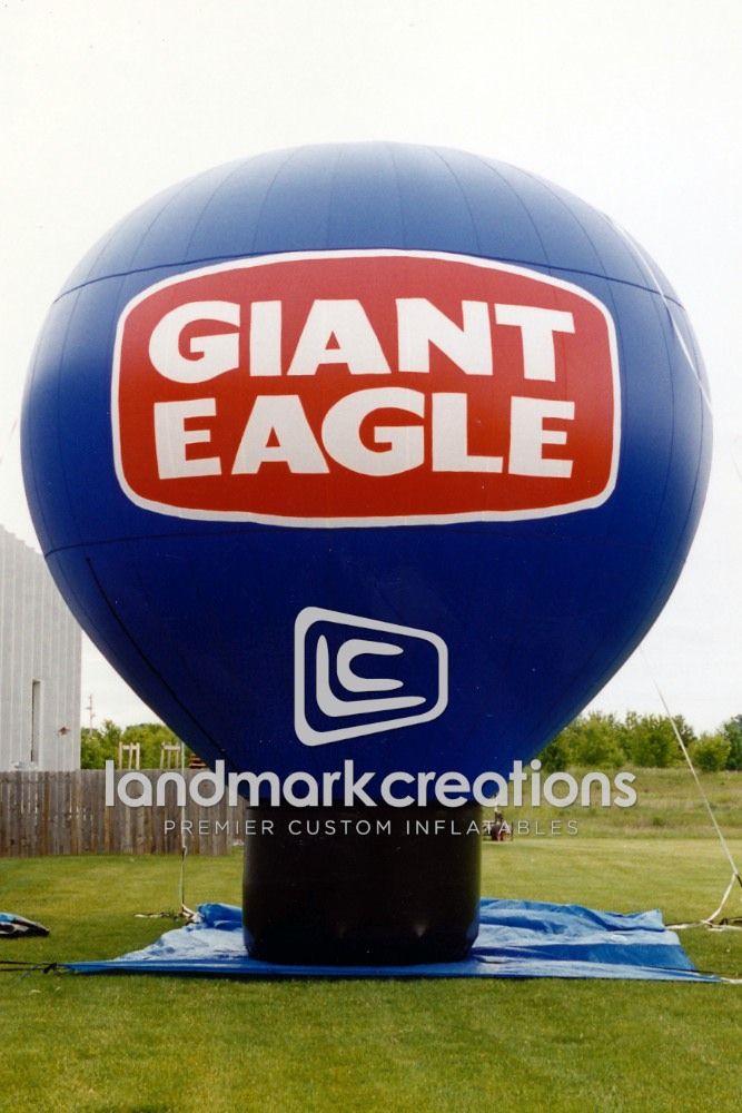 Landmark Creations designed a custom blue hot air shape inflatable for Windswept Adventures and their client, Giant Eagle, to elevate supermarket promotions with captivating displays. This striking inflatable acts as a centerpiece for event marketing, drawing attention and amplifying brand visibility.