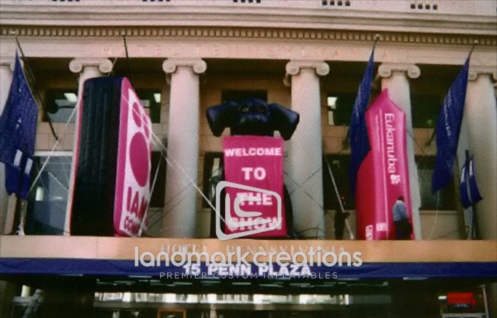 Placed at the entrance to the Hotel Pennsylvania, this giant inflatable Iams logo -- along with a giant inflatable black lab and Eukaneuba bag -- brought attention to a major pet industry trade show. Inflatable billboards are easy-to-mange marketing tools that are perfect for welcoming attendees to large scale events.