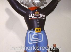 Ka-Boomers Fireworks, located in Nebraska, uses their inflatable Lobo Louie mascot to advertise their half off fireworks sale.