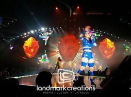 Everything Katy Perry does is big, bold, and to the limit- and her stage shows epitomize this. But sometimes, like at the KaaBoo music festival in 2018, you don’t have days to construct an elaborate set onstage- you may only have between set times. So Perry and her team make great use of inflatables like this one, which install quickly and flawlessly time after time!