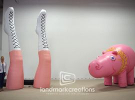 Ke$ha, an American singer-songwriter, used this custom inflatable stage prop during her 2013 summer tour with Pitbull. The inflatable pink hippo, completed with some serious "bling", helps bring the stage to life!