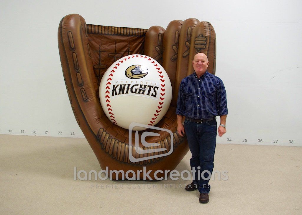 Here's a home run holiday display idea! This giant inflatable baseball glove for the Charlotte Knights was placed inside a giant snow globe and displayed on a float during holiday parades!