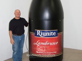 Marc Rebillet's toasts in the New Year at The Factory in Dallas, TX with a giant inflatable champagne bottle replica. Performer Marc Rebillet is known for regularly using champagne bottles as props in his performances, so what better visual to ring in the new year than a giant, fifteen-foot tall champagne bottle? Custom inflatables work well as large stage pieces because they're easy to set up and they pack small for easy transport between shows.