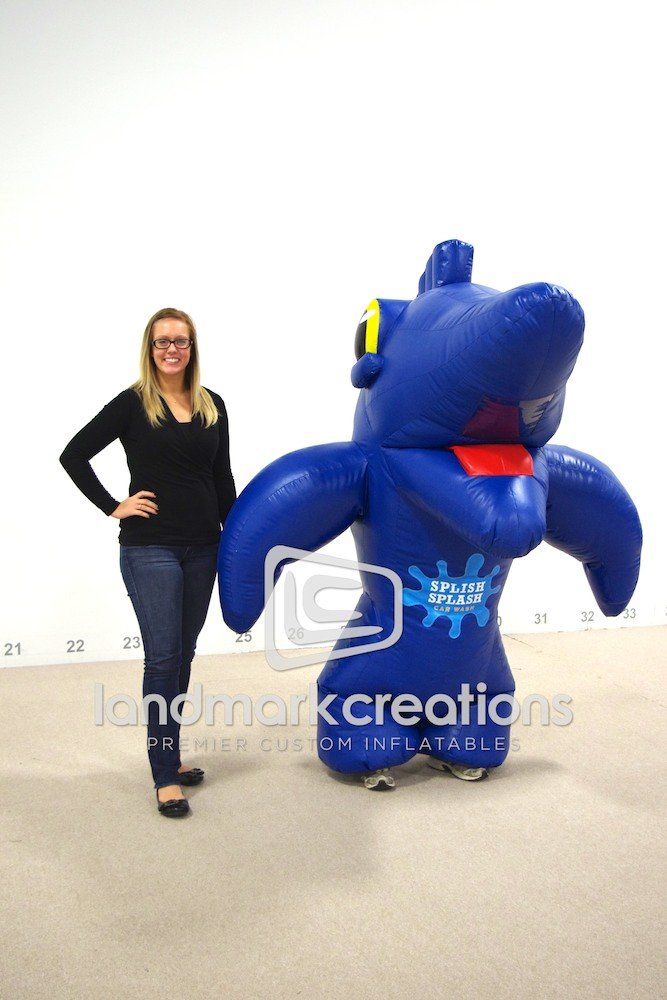 Car Wash Express increases traffic to their car washes by inflating this marlin costume. Dancing in the inflatable costume helps capture the attention of potential customers passing their location.