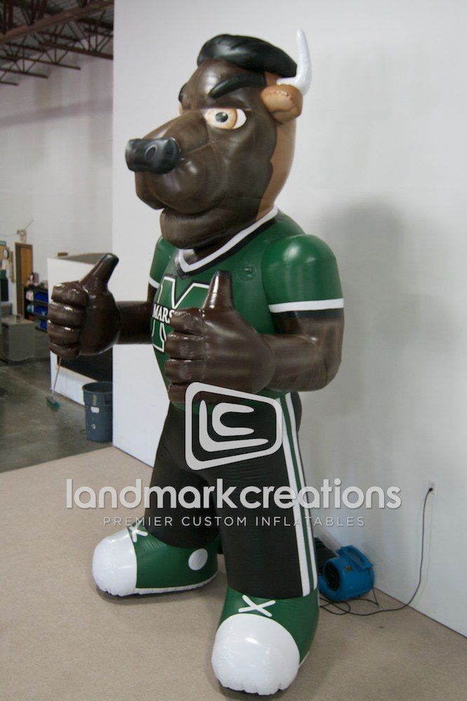 Designed for the Marshall University Alumni Association, this custom inflatable mascot, Macro the buffalo, got fans wild at sporting events