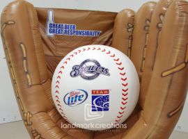 Roberts Dairy Foods, a sponsor of the Iowa Cubs, uses their inflatable Vitamin D Milk bottle placed inside of a giant baseball glove to promote their product at home games!