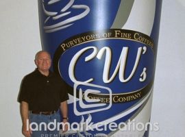 Millstone Coffee, Inc. uses this custom-designed inflatable coffee cup, complete with branding image, to advertise their unique blends and coffee varieties at grocery and retail locations.