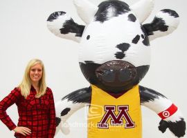 Gophers Basketball and Target teamed up and entertained fans at 'The Barn' during the University of Minnesota’s basketball games! Inflatable costumes, like this chicken character, danced and charmed audiences.