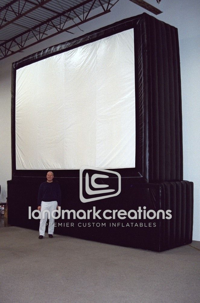 This custom inflatable movie screen is supported by a black pedestal that doubles as a message or advertising area. Perfect for companies hosting or sponsoring social events! Commercial Grade: Custom Built to Order.