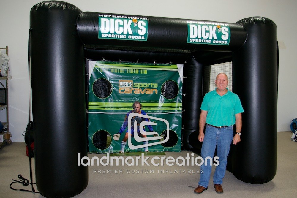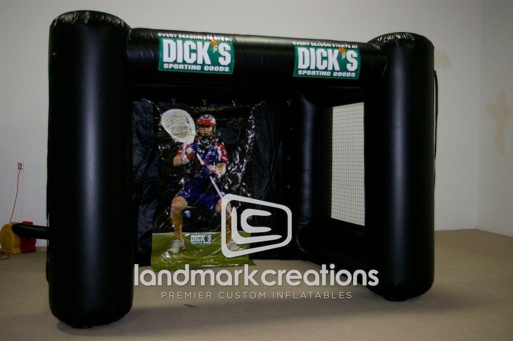Crowds of young athletes line up to participate at special events when sporting goods retailer, Dick's, inflates this multi sport cage to share their passion for sports.