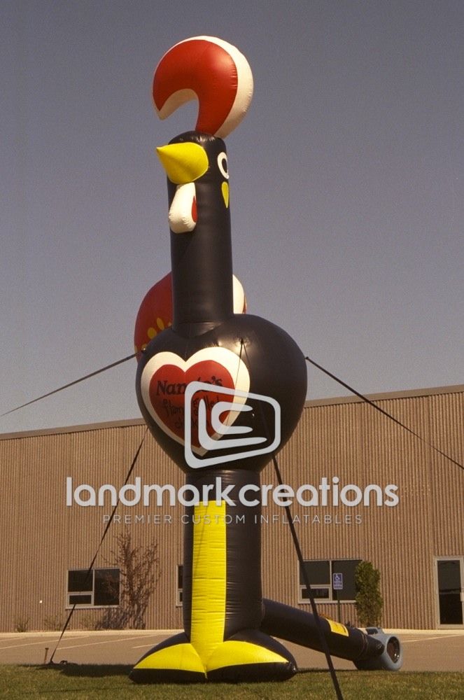 Because of its striking colors and graphics, the chicken mascot for Nando's restaurants made a perfect inflatable display to attract attention to restaurant franchise locations.