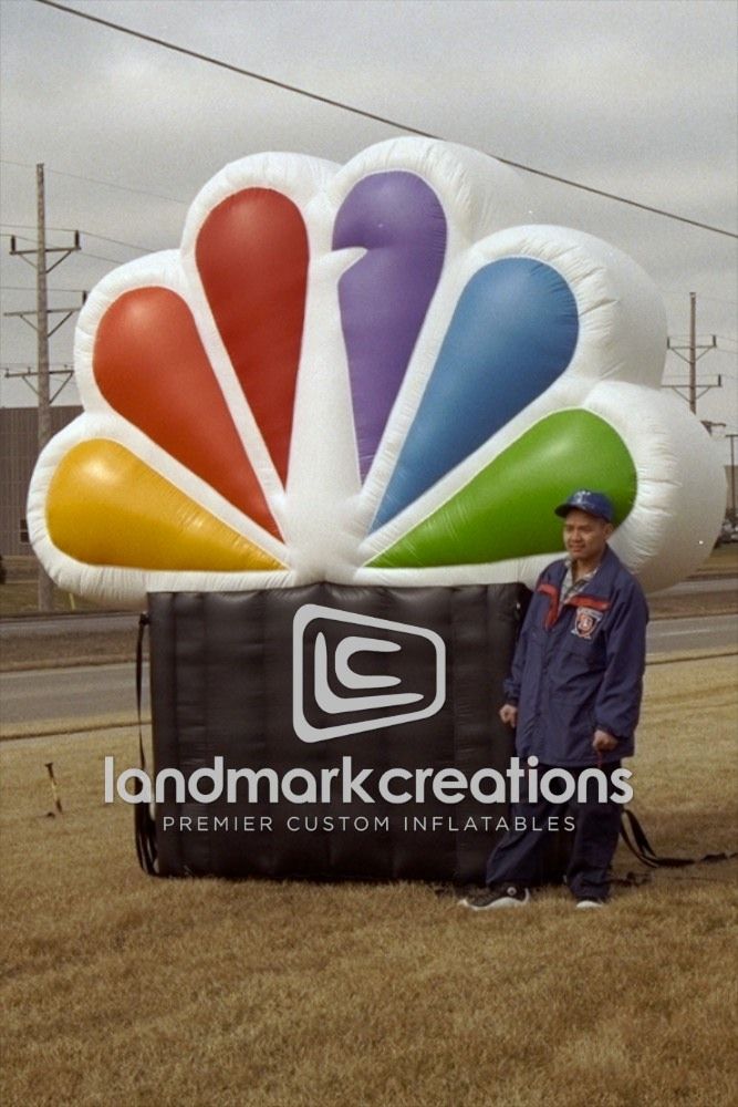 This signature Peacock logo for television station NBC was made into an inflatable display for outdoor events. Inflatable logos like this one bring high visibility to crowds of all sizes at different types of events.