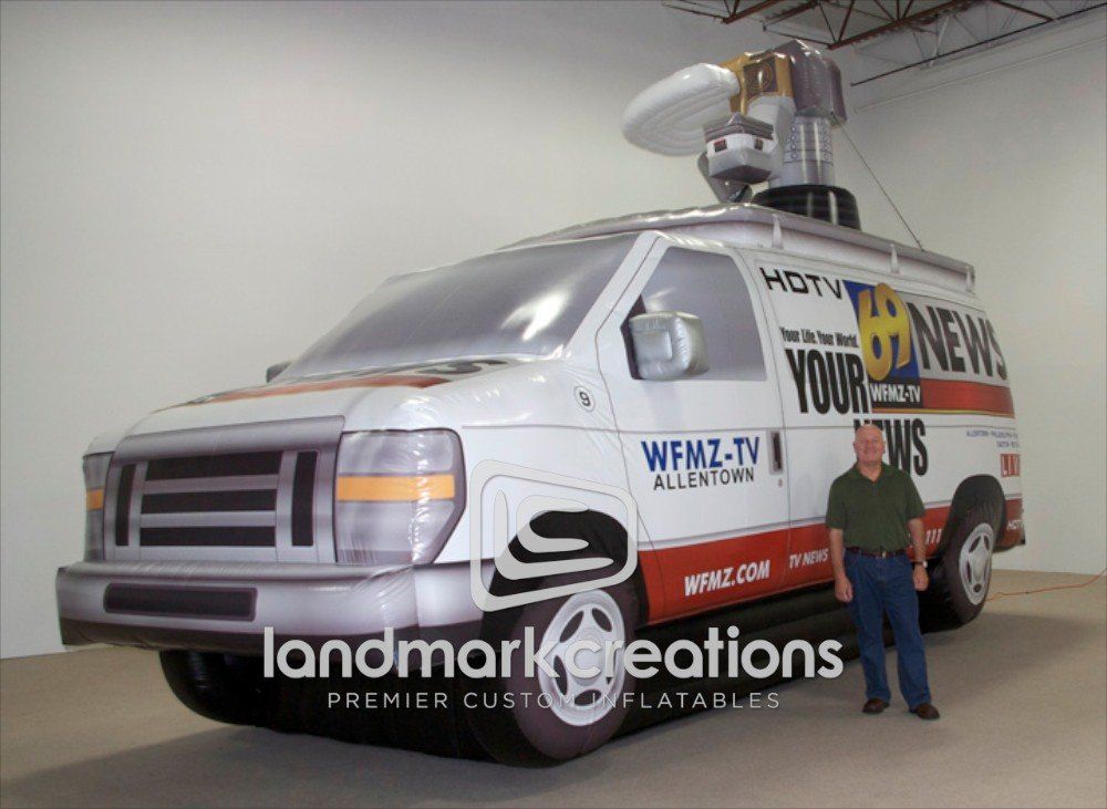This inflatable van replica for WFMZ-TV news station, serving eastern Pennsylvania and western New Jersey, is used to promote their newly-designed news trucks at fairs and festivals.