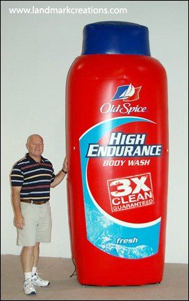 Inflatable product replicas are a popular choice for product launches. This inflatable body wash replica for Old Spice was used to promote the new product at events.