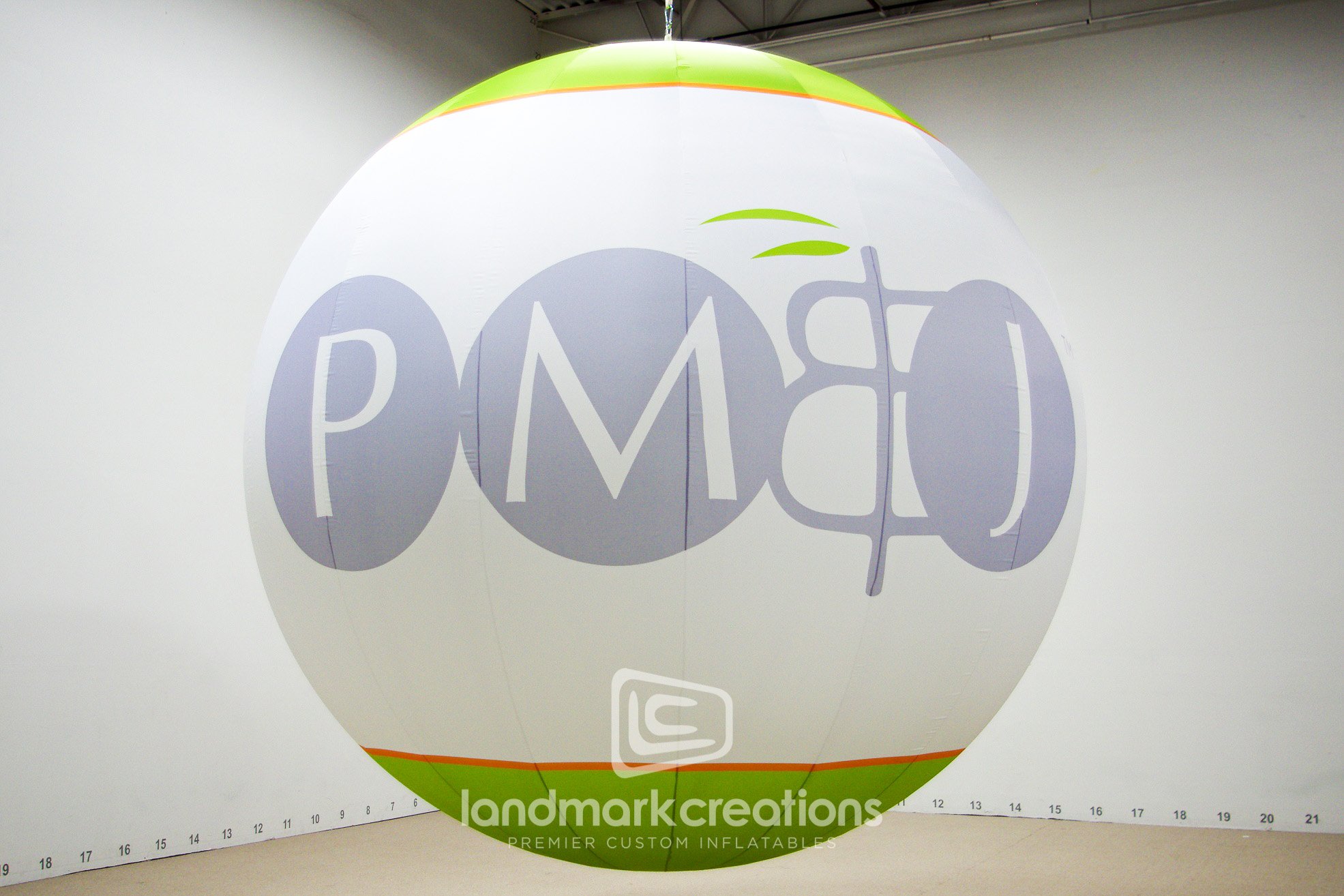 PM&J, a manufacturer of pet, apparel and home products, suspended this giant inflatable sphere logo about their trade show booth! Inflatable spheres are an easy-to-manage display item that attract big attention.